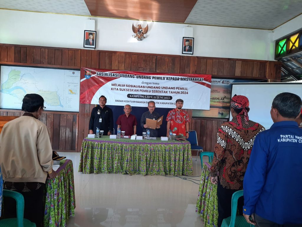 RILISJATENG.COM– Dalam rangka meningkatkan partisipasi politik pemilih pada Pemilu 2024, Badan Kesatuan Bangsa dan Politik (Kesbangpol) Kabupaten Cilacap melaksanakan Sosialisasi Undang Undang Pemilu di Pendopo Kecamatan Kampung Laut Kamis (22/06). Kegiatan ini diikuti 100 peserta yang terdiri dari tokoh agama, tokoh masyarakat, Parpol, Ormas, dan pelajar dari 4 Desa di Kecamatan Kampung Laut.