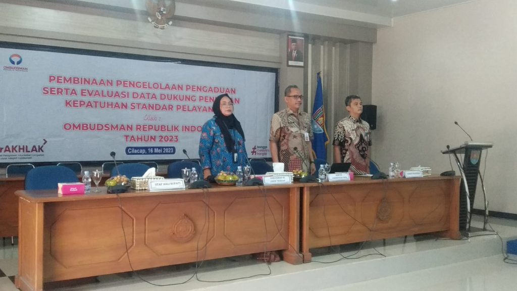 RILISJATENG.COM– Dalam rangka meningkatkan pelayanan publik, Pemerintah Kabupaten Cilacap melalui Ombudsman RI menyelenggarakan pembinaan pengelolaan pengaduan serta evaluasi persiapan penilaian kepatuhan standar pelayanan publik Tahun 2023, Selasa (16/05/2023) di Ruang rapat Jalabhumi Setda Cilacap.